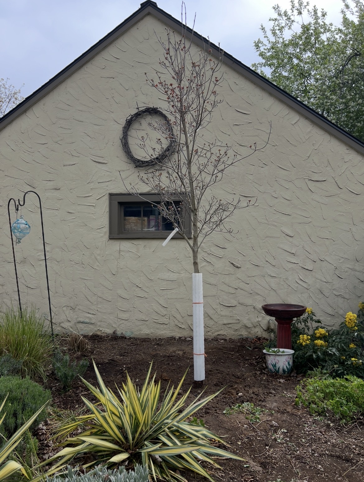 Planted a Cherokee Chief Dogwood tree with pink blossoms.